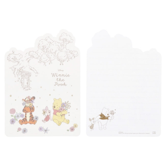 Briefpapier-Set mit Fenster, bei dem sich das Design ändert, wenn Sie das Kuvert öffnen. Das Muster ist Winnie the Pooh. Wenn Sie das Briefpapier aus dem Umschlag nehmen, ist Tigger von Blumen umgeben!