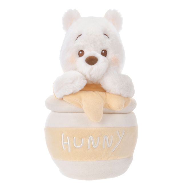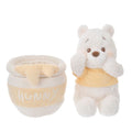 Kuscheltier von Winnie the Pooh, der Honig liebt. Ein niedlicher Pooh mit einem flauschigen Gesicht und sanften braunen Augen und Nase, die perfekt dazu passen. Sein Aussehen, wie er perfekt in den Honigtopf passt, ist entzückend! Sie können ihn auch aus dem Honigtopf nehmen. Das helle Honiggelbe Hemd passt auch gut dazu. Das kuschelige Plüschtier in warmen Farben scheint das Herz zu beruhigen, wenn es nur in der Nähe ist. Stellen Sie es in Ihrem Lieblingsplatz im Raum auf und genießen Sie es.