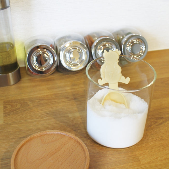 Dieses Produkt ist ein Messlöffel-Set für Gewürze. Es ermöglicht das Abmessen von einem Esslöffel und einem Teelöffel (mit Messskalen im Inneren). Selbst in der hektischen Küchenzeit wird das Kochen mit diesem niedlichen Charakter-Kochutensil zu einer unterhaltsamen Zeit! Es hat einen niedlichen Charakter-Anhänger am Griff.