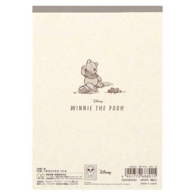 A6-Notizbuch "Memo A6". Das Muster zeigt Winnie the Pooh. Das Cover-Design zeigt das Gesamtbild der 100-Morgen-Wald-Schrift.