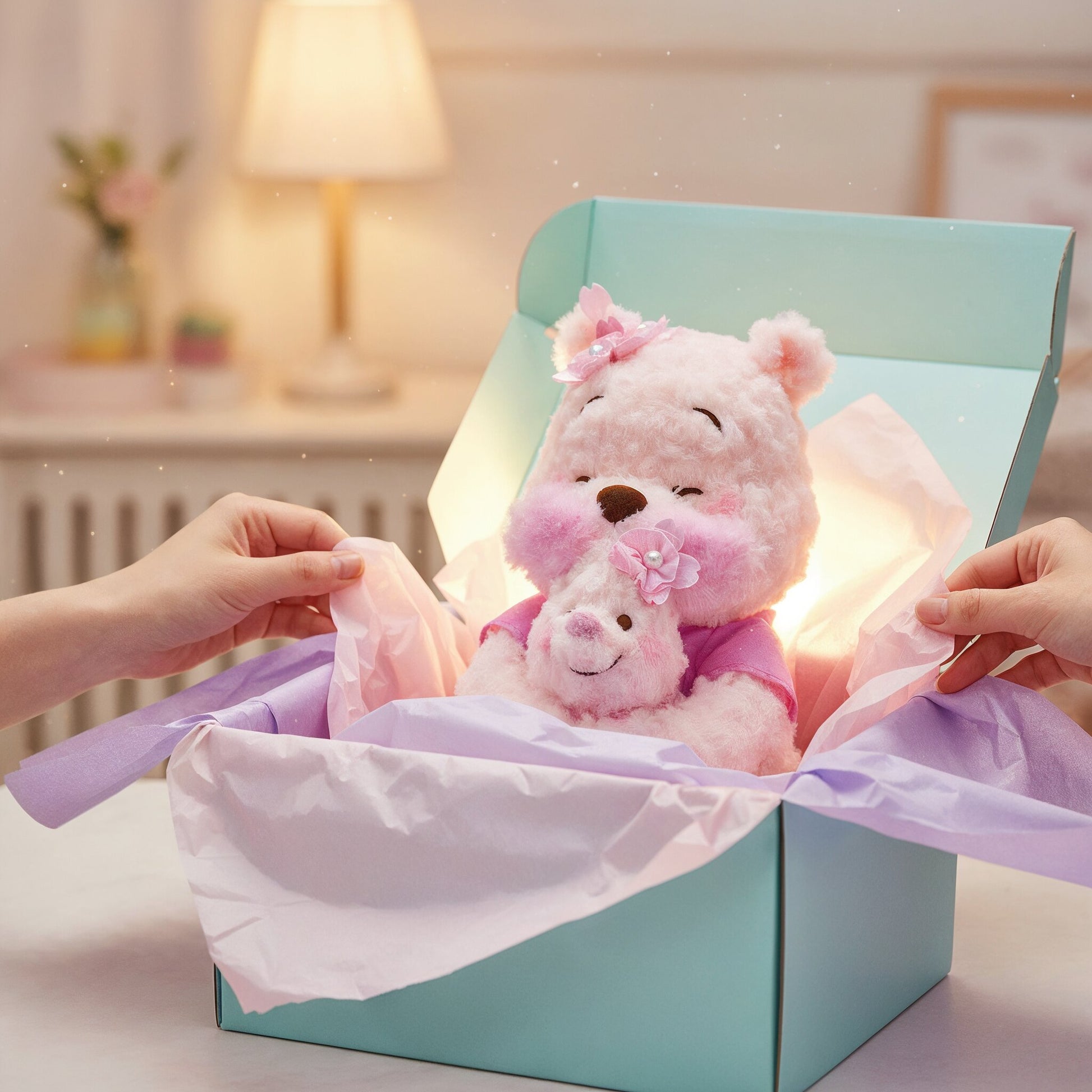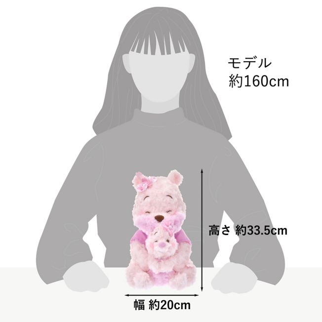 Das Plüschtier von Winnie the Pooh und Piglet in Kirschblütenfarbe ist erhältlich. Winnie the Pooh und Piglet, die beste Freunde sind, genießen fröhlich die Kirschblüten. Der in Kirschblütenfarbe getauchte Körper ist aus einem Rosé-Boa-Stoff gefertigt, der durch seine wirbelnden Haare auffällt. Passend zum eleganten Eindruck des flauschigen Körpers hat Winnie the Pooh auch sein T-Shirt in Pink gewechselt. Die Kleidung aus verschiedenen Materialien hat einen fantastischen Glanz und zusammen mit den Perlenblumen, die am Kopf und am Po befestigt sind, entsteht eine festliche Atmosphäre. Achten Sie auch auf die Blütenblätter, die leicht auf Winnie the Poohs Füßen fallen. Dieses Plüschtier von Winnie the Pooh und Piglet im Frühlingslook ist ein perfekter Weg, um Ihr Zuhause zu verschönern.
