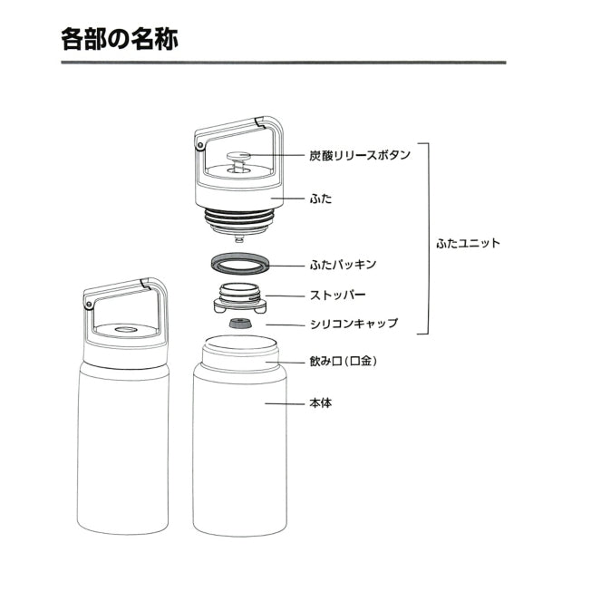 Eine Wasserflasche mit einem Design von Winnie the Pooh, die für kohlensäurehaltige Getränke geeignet ist, ist erhältlich. Es verwendet ein attraktives Charakterkunstwerk mit einem erwachsenen Touch und einer bunten Farbgebung. Der Deckelgriff öffnet und schließt wie ein Karabiner, was praktisch für den Transport ist. Es handelt sich um eine isolierte Wasserflasche, die sich wie eine normale Trinkflasche verwenden lässt und auch für kohlensäurehaltige Getränke geeignet ist. Wenn Sie kohlensäurehaltige Getränke trinken, drücken Sie den Kohlensäure-Freisetzungsknopf auf der Oberseite des Deckels etwa 5-8 Sekunden lang, lassen Sie das im Inneren des Behälters angesammelte Gas entweichen und öffnen Sie dann die Deckeleinheit langsam gegen den Uhrzeigersinn. Einfache Pflege aufgrund der einfachen Struktur. Genießen Sie kohlensäurehaltige Getränke wie Cola oder Limonade jederzeit und überall in gekühltem Zustand!