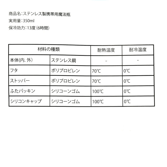 【Spezifikationen】*Dieses Produkt ist ausschließlich für die Kühlung geeignet. Bitte keine heißen Flüssigkeiten einfüllen. *Fassungsvermögen: 350 (ml)