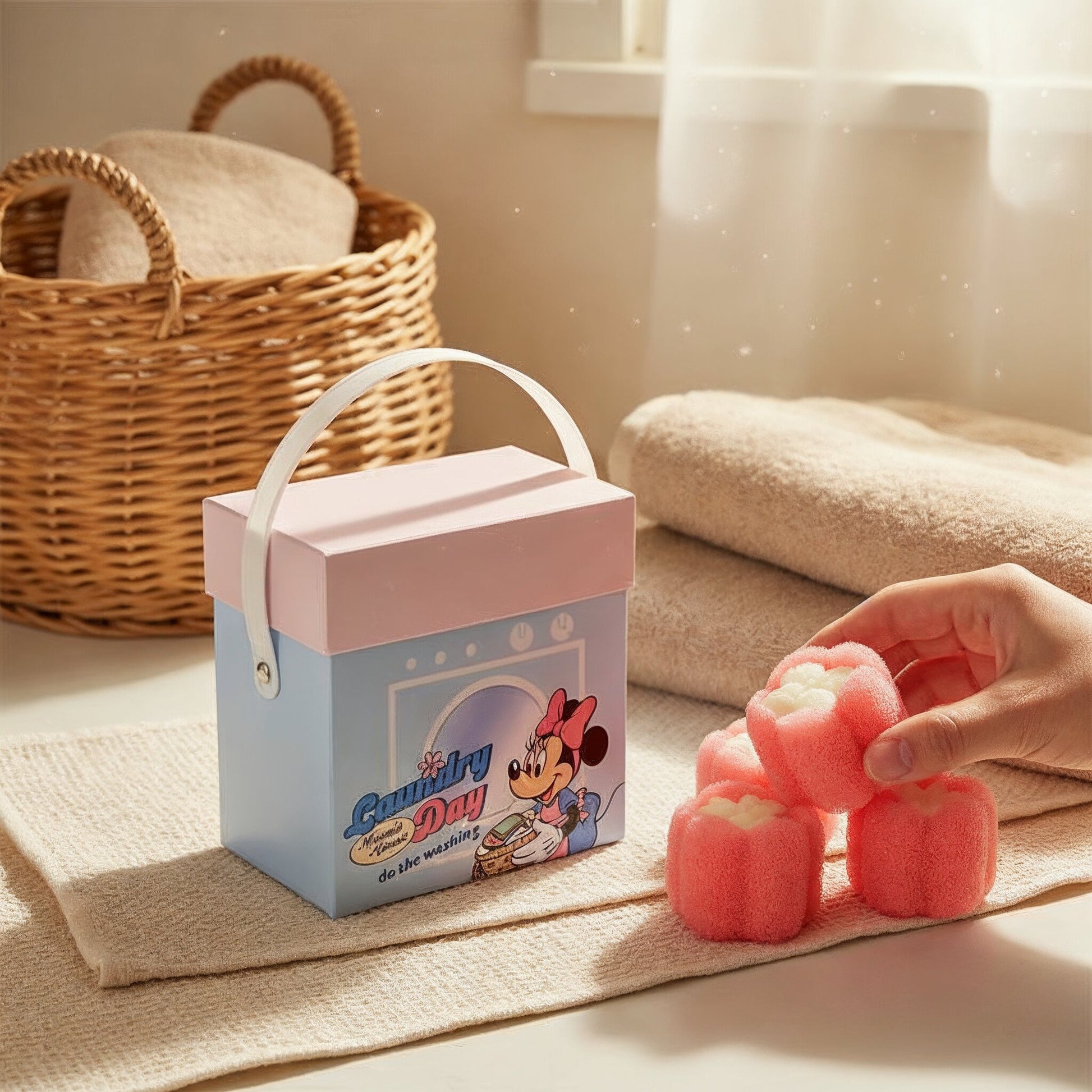 Wir präsentieren Waschbälle in einer Dose mit Minnie-Motiven.