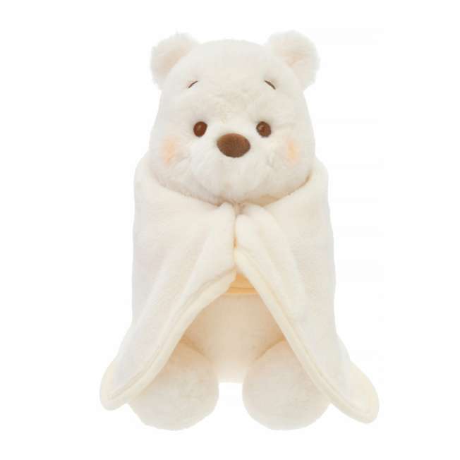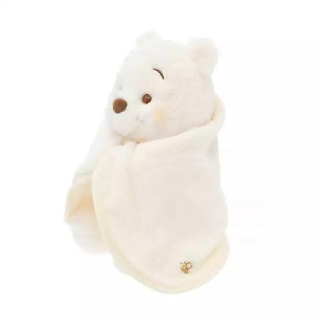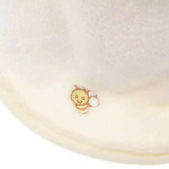 Plüschtier-Schlüsselanhänger mit Farben, inspiriert von Honigmilch-Latte. Pooh eingewickelt in eine warme Decke. Die Decke hat bezaubernde Stickerei von Bienen.